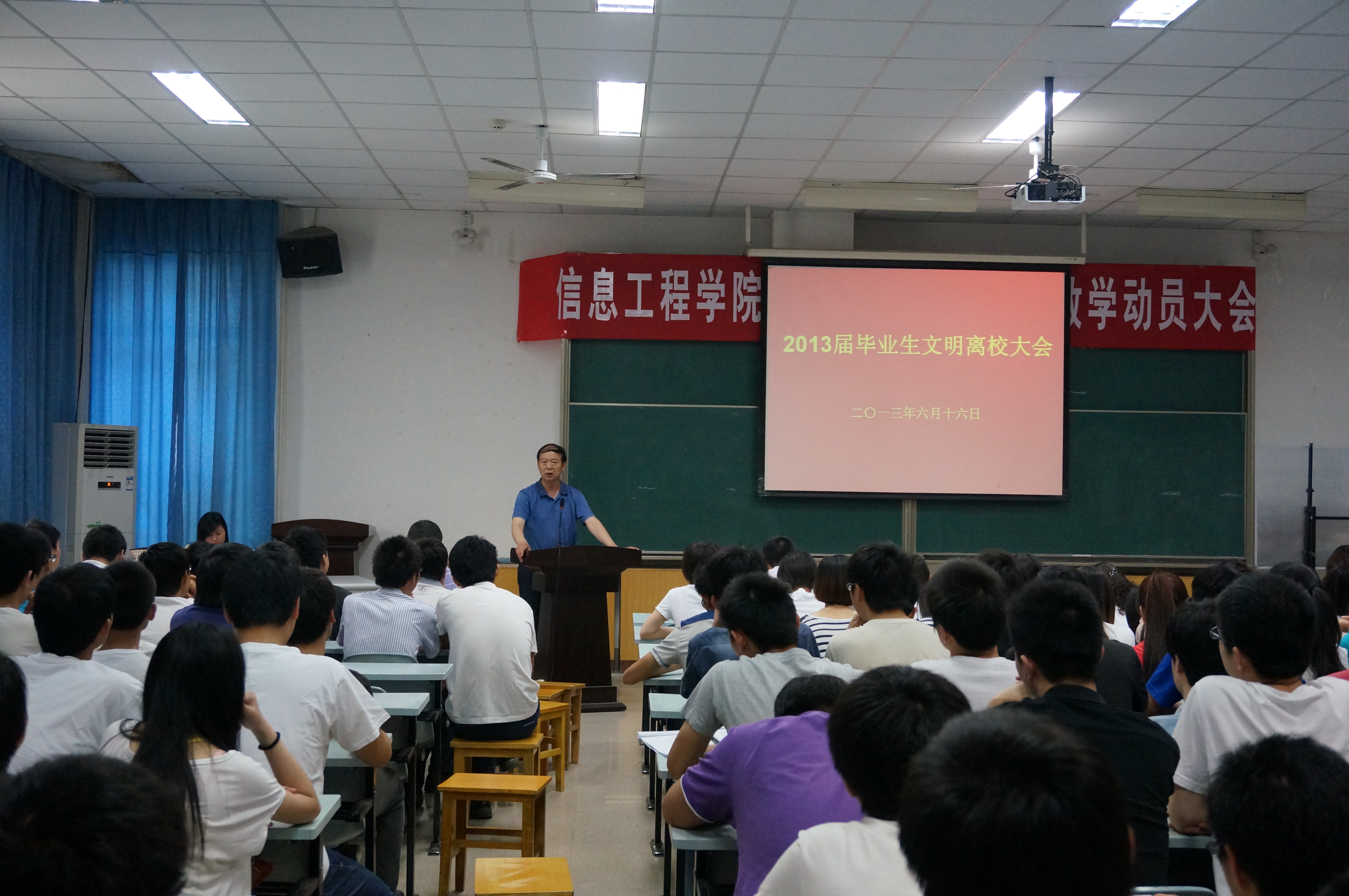 2013年 6月16日上午,永利3044浏览器在学院实验室M2教室召开了2013届毕业生文明离校教育大会。学院党委书记樊世明、党委副书记何卫军、副院长张阳及各办公室负责人、毕业班班主任、辅导员和在校毕业生参加了会议。会议由党委副书记何卫军老师主持。