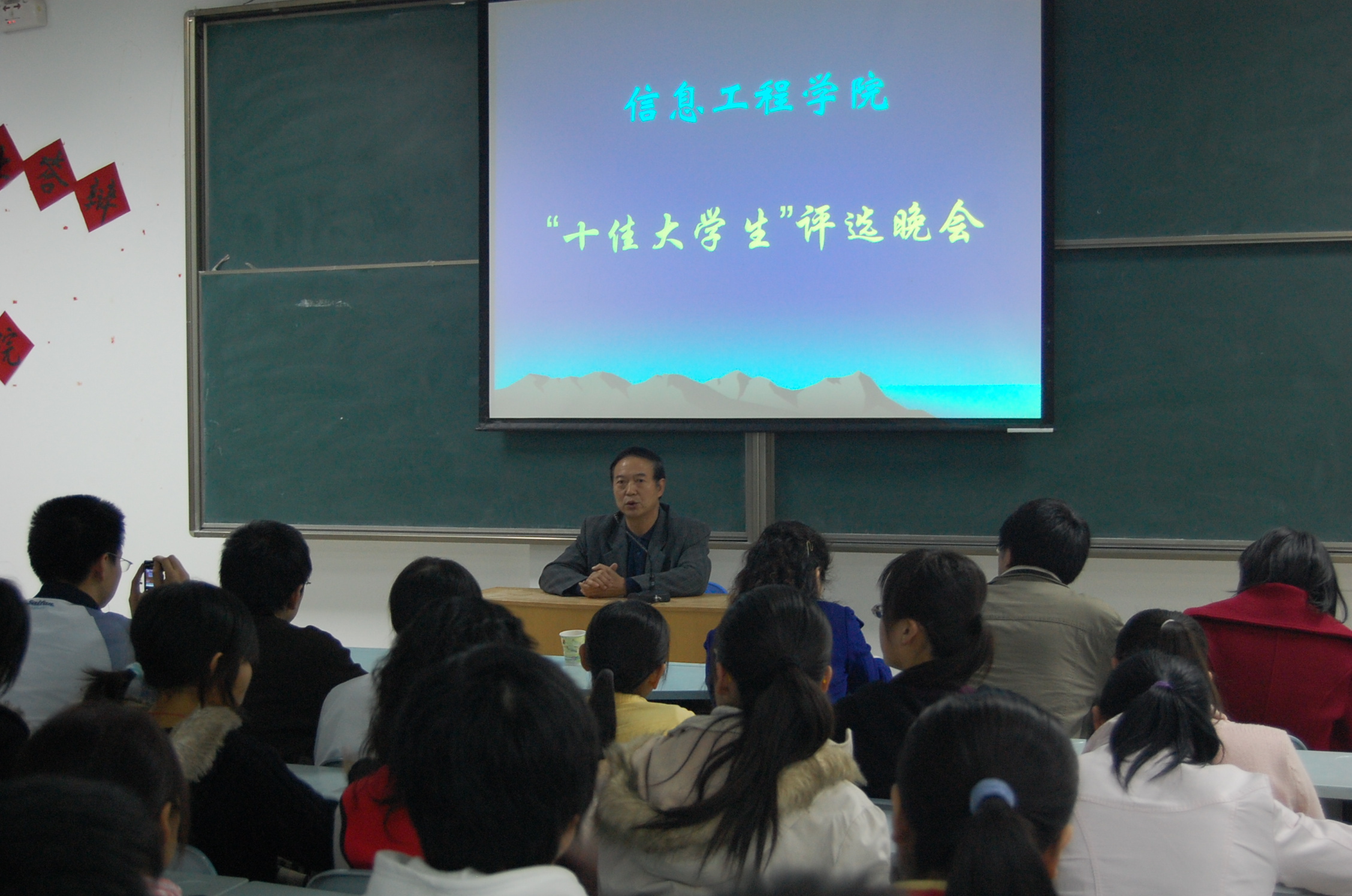 为了推进优良校风与学风建设,提高大学生综合素质,培养具有创新精神和实践能力的高素质人才,营造健康积极向上的学习、文化氛围,经过本人申请、班级推荐、学院“十佳大学生”评定小组初审,永利3044浏览器于11月23日晚在多媒体教室M1隆重举行了院“十佳大学生”评选活动。学院党委书记樊世明老师,学院党政综合办公室办公室主任何卫军老师、张蓉老师,院团工委书记谷申杰老师,07级辅导员王淑珍老师以及刘阳阳老师出席了此次大会,大会由谷申杰老师主持。
