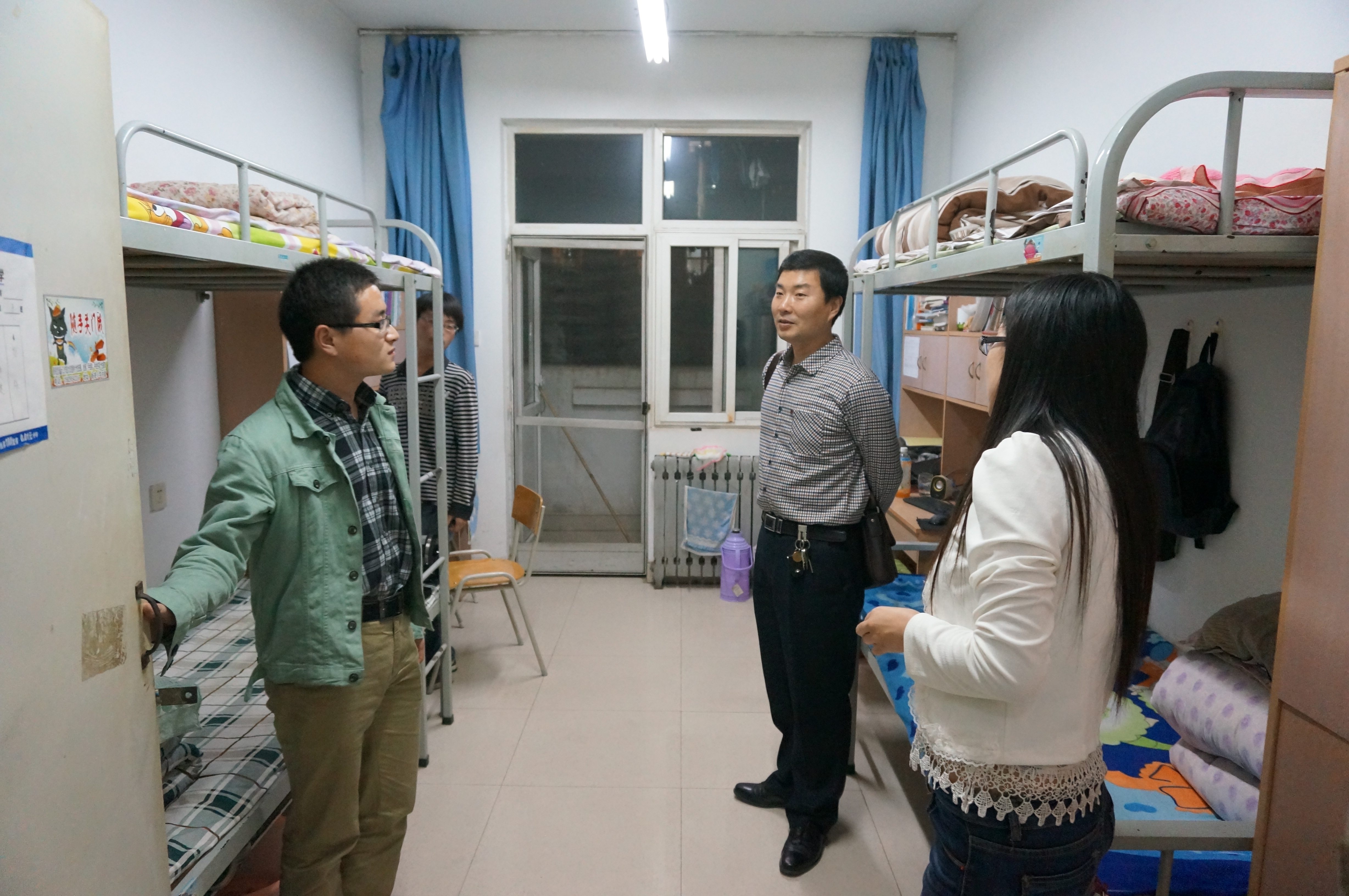 2013年5月2日晚,永利官网为落实“文明宿舍创建活动”,学院党委副书记何卫军、学工秘书王淑珍、团工委书记桂恺、辅导员倪玲、仵亚伟、郭峰、学院学生会主席团以及生活部主要学生干部共同走访检查了学院西区10#的学生宿舍。