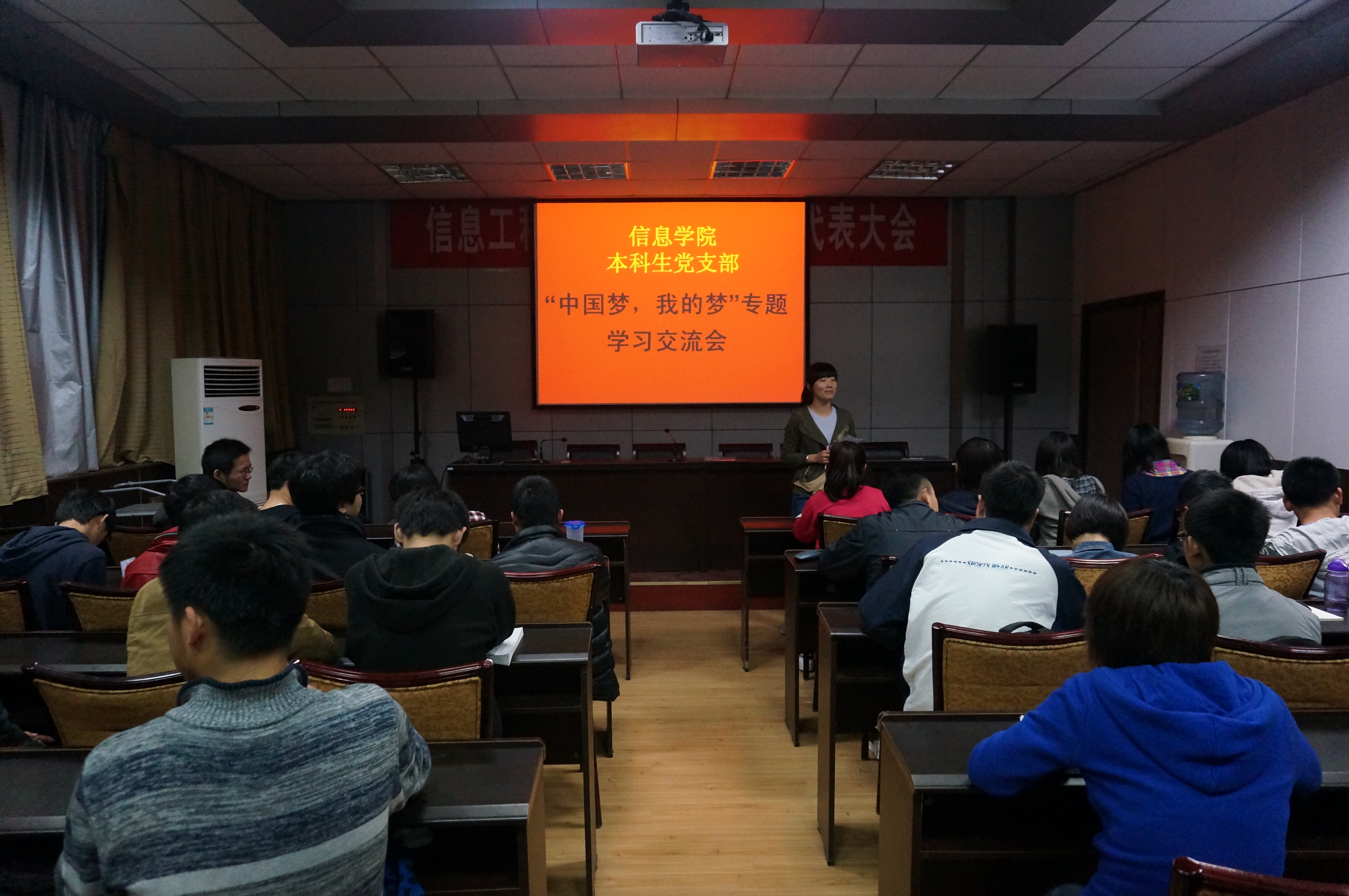 4月11日晚,信息学院本科生支部“中国梦·我的梦”专题座谈交流会在学院二层会议室举行。座谈会由党支部宣传委员冯爱玲同学主持。党支部书记倪玲老师全程指导参与讨论。