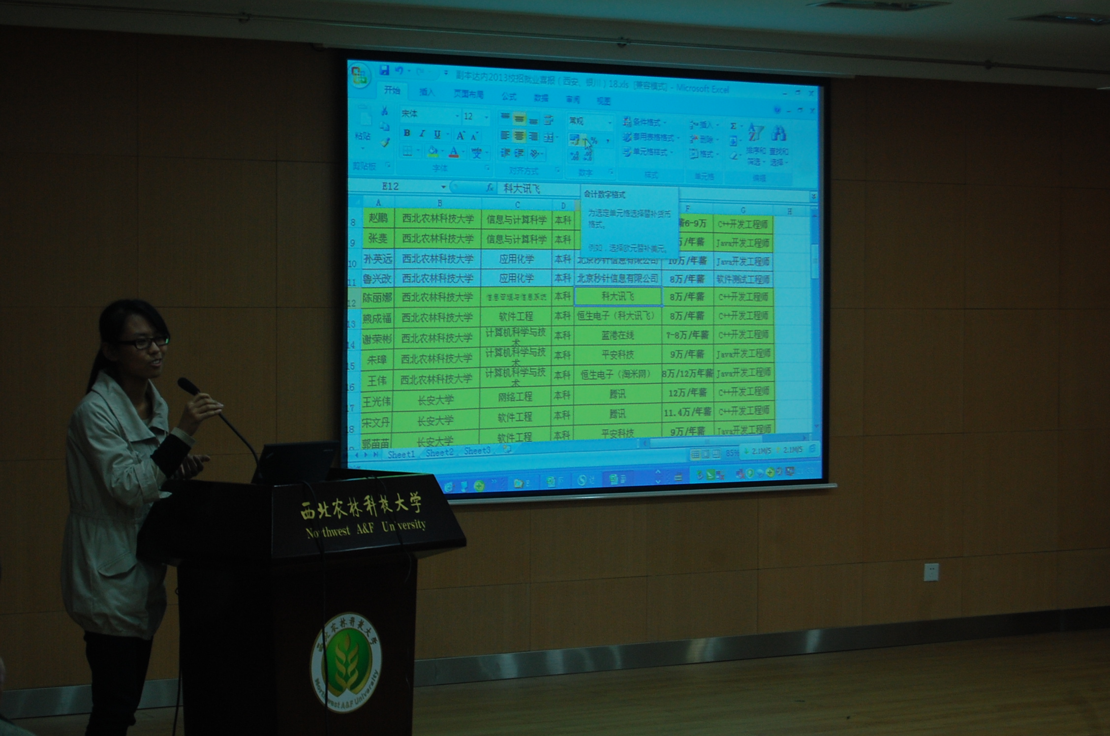 2012年10月18日晚7点半,信息学院联合达内科技集团于北绣山活动中心南报告厅举办了以《大学生高薪就业解决方案》为主题的专场报告会。院团工委书记桂恺老师主持此次报告会。