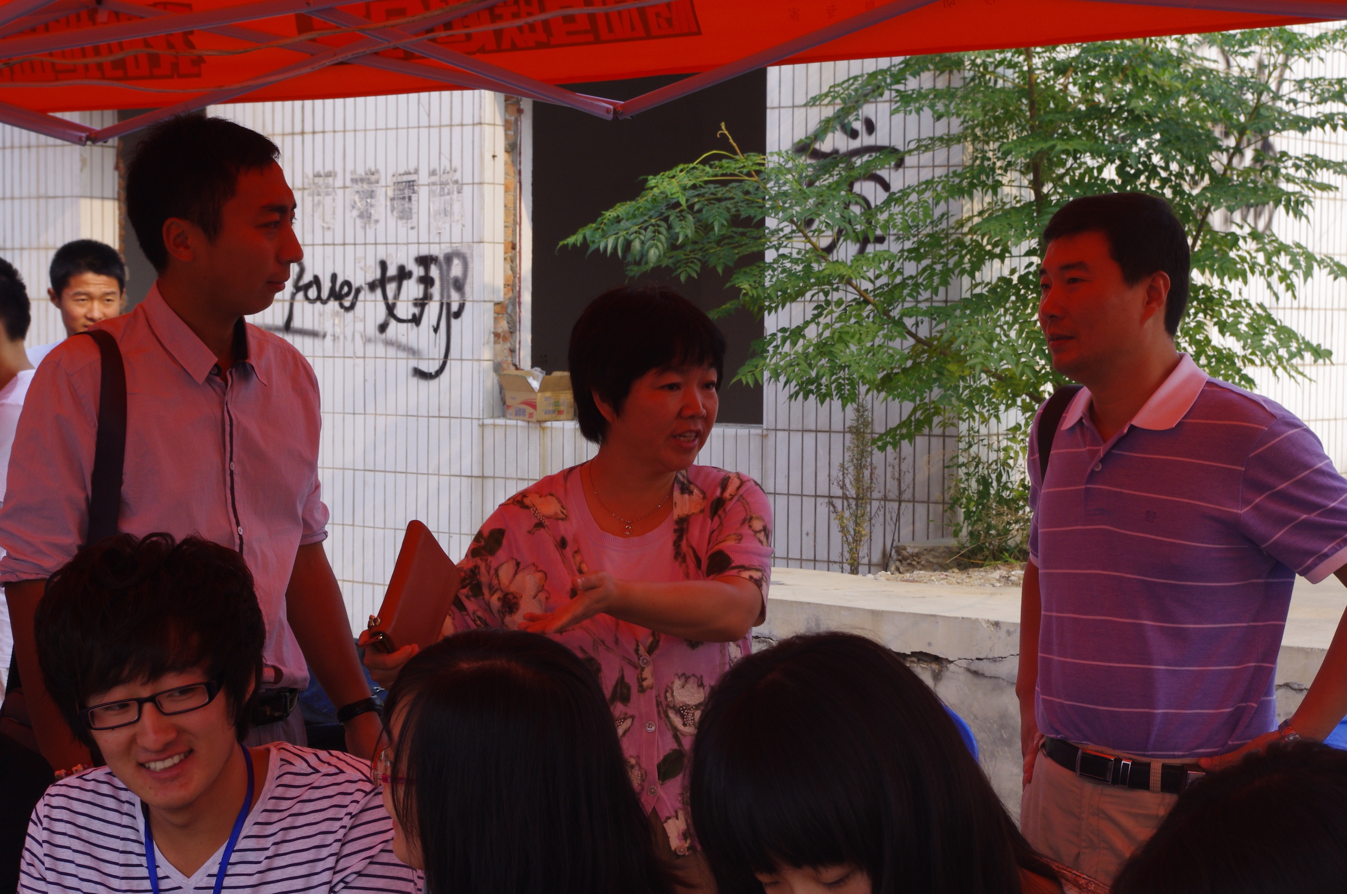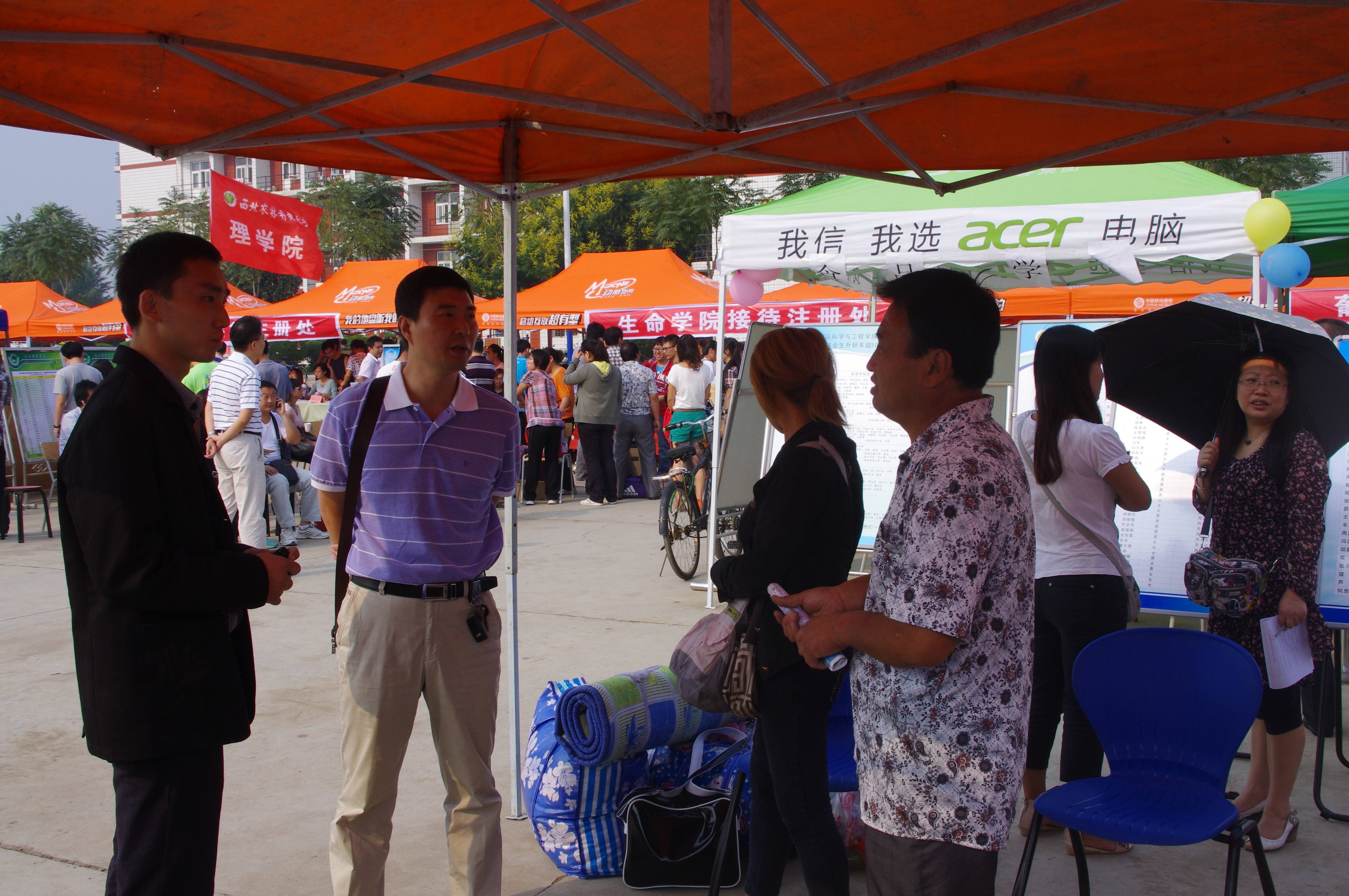 9点,院长李书琴、党委副书记何卫军等领导来到新生接待处指导工作。他们亲切地与迎新志愿者们交谈,肯定了同学们的工作。关切地询问新生及其家长,向他们介绍对我校永利官网的部分情况,给初来乍到的新生带来第一丝温暖。
