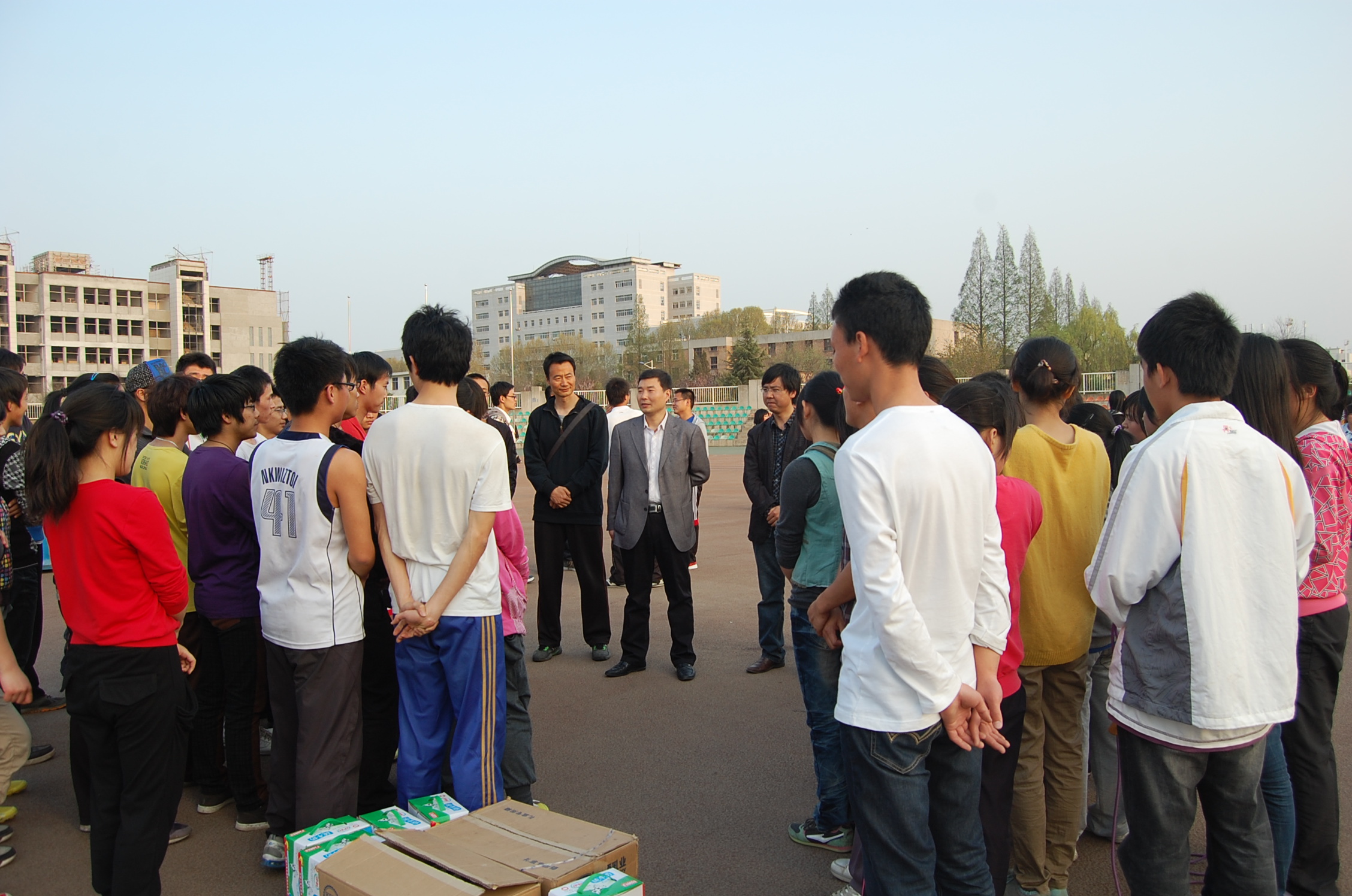 4月9日下午6:00,永利官网党委副书记何卫军携带营养品赴田径场慰问了积极备战校运会的运动员们。学院辅导员谷申杰老师和倪玲老师陪同参加了此次活动。