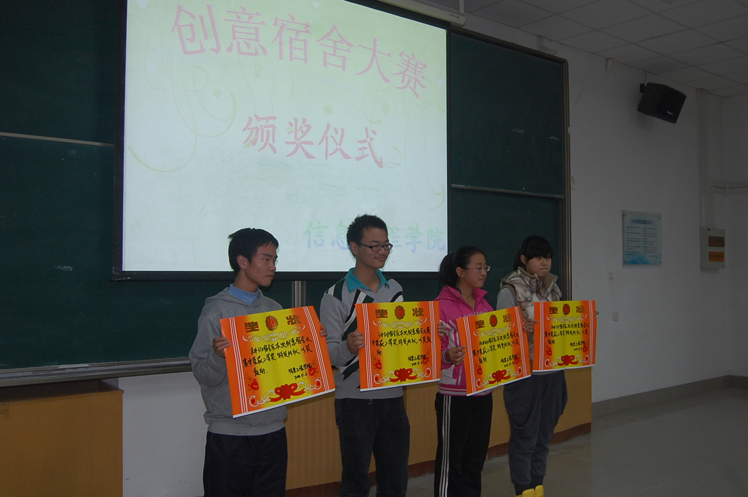 11月2日下午,永利官网在M2教室举行了2011级“创意宿舍”大赛颁奖仪式,辅导员倪玲老师、校学生会生活部副部长付婷婷以及到场的各院生活部部长为15个获奖宿舍颁发了奖状。